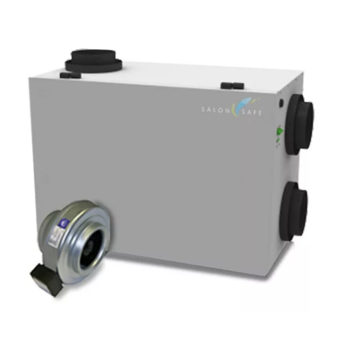 Beware of others, code requirement requires toxic fumes are exhausted to the outside. Every workspace source must have an airflow damper control to achieve a balance of 50 cubic feet per minute. Air going out must be regulated to come back in fresh. Almost all systems, nail tables, and pedicures available today do not do solve the toxic fume issue by offering an intake and a pipe or a filter. You will waste money and fail passing inspection. Design X offers a complete solution, with proper air regulation per health code requirement. The patented Salon FreshAire ventilator unit for up to 4 work sources connects to any of our nail tables and pedicure spas providing high-efficiency toxic fume exhaust and fresh air recovery by applying economical temperature acclimation during the fresh air recovery in a compact, affordable package for nail and hair salons. Each FreshAire ventilator balances exhaust and fresh airstreams while moderating temperature extremes and humidity both in summer and winter in nail and hair salons. The systems purpose is to be health code compliant by removing toxic fumes from all nail salon chemical pollutants at the work source. City codes and landlords are now requiring nail salons to provide a way to capture and exhaust harmful fumes and supply back fresh outdoor air.
