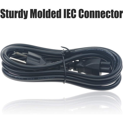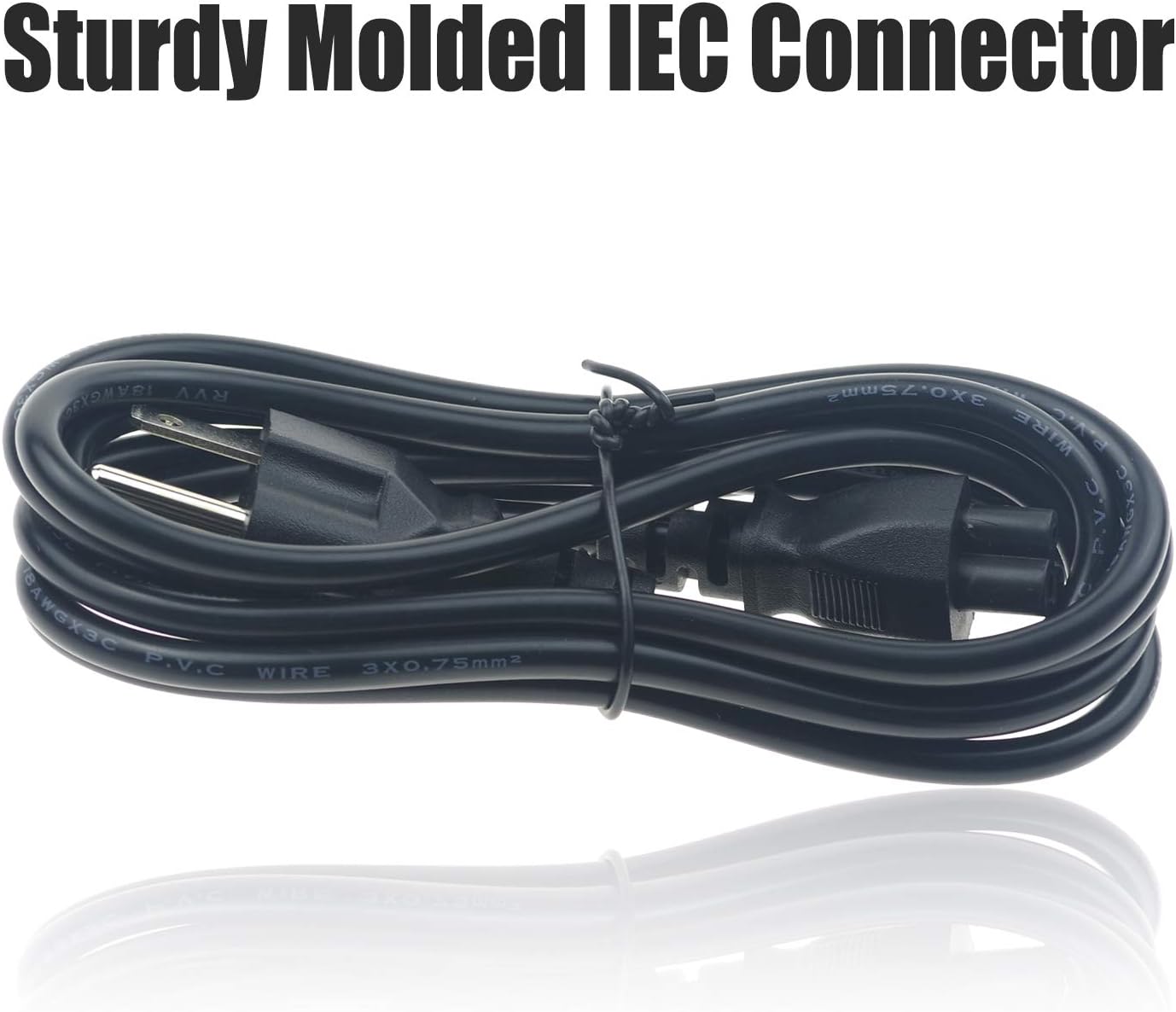 - High Quality Replacement Cable : High voltage, open short tested. The heavy-duty power cord features a 3-pin shroud Female (IEC320C13) connector on one end and a 3-prong grounded plug Male (C5 to NEMA 5-15P) on the other end. Fully molded design for reliable